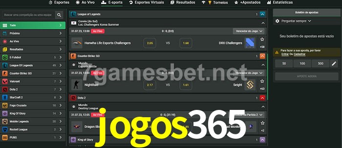 O jogos365 oferece uma grande seleção de opções de apostas em e-sports com probabilidades competitivas